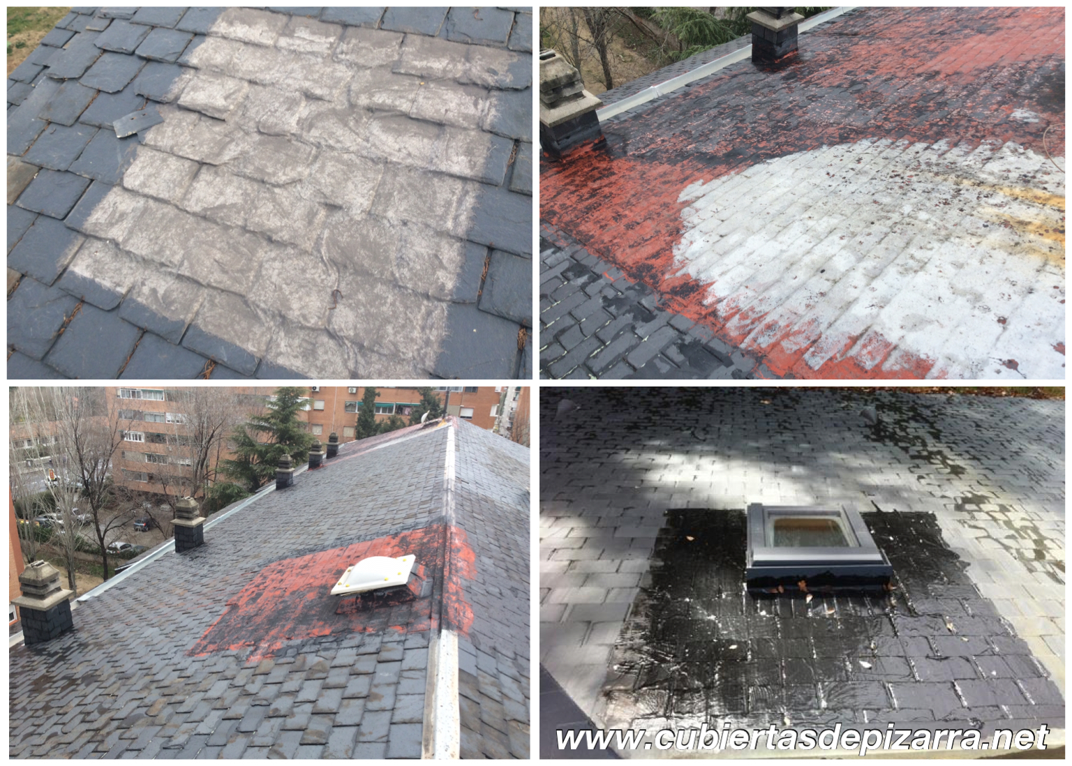 En resumen y a lo que a pizarra se refiere yo siempre digo que los tejados de pizarra solo se reparan con pizarra, huya de las telas asfálticas colocadas sobre pizarra, huya de los arreglatodo, huya de las siliconas que no sean únicamente para sellar elementos de encuentros en la cubierta, huya del albañil de confianza y si cabe también huya de nuestro familiar que sabe hacer de todo!
